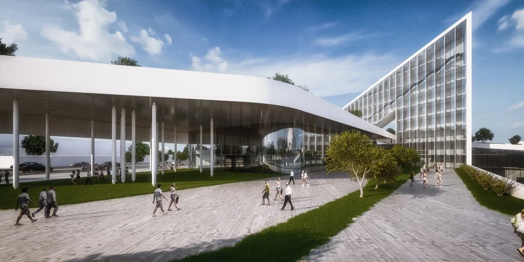 Blurring the boundaries between indoors and outdoors, the design merges building structure with public space, transforming underutilized urban gaps into vibrant, sustainable environments. By weaving together coastline, city center, and industrial districts, the hub establishes a continuous public flow and fosters social and cultural interactions across three levels of elevation.